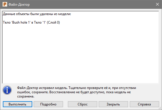 При завершении этого процесса Файл-Доктор сообщит о геометрии (если таковая имеется), которую нужно удалить для исправления модели.