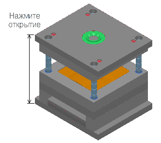 Держать в открытой позиции - если нажать кнопку Закрыть, пресс-форма останется открытой на заданное текущее расстояние. Это удобно для получения чертежей базовых блоков открытой модели.