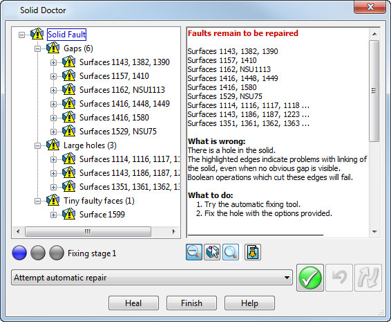 Используйте Solid Doctor для обнаружения и исправления ошибок в теле. Следующее классифицируется как ошибки: