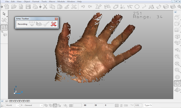 Прим.: После того, как из скана была генерирована сетка, продолжать сканирование невозможно. Для повторного сканирования необходимо закрыть и снова открыть панель инструментов Artec.
