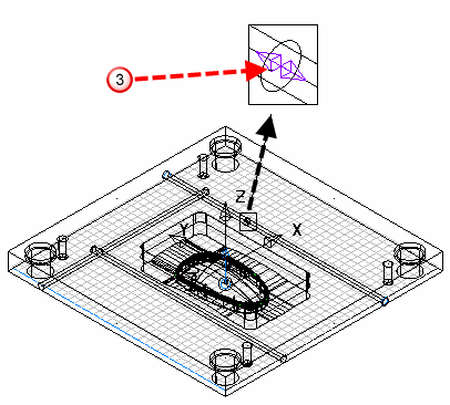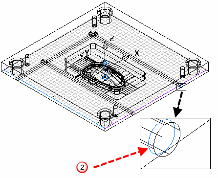 . Это изменит место сверления на противоположную грань плиты пресс-формы.В примере отверстие справа должно входить в плиту снизу. Вы можете нажать кнопку Развернуть