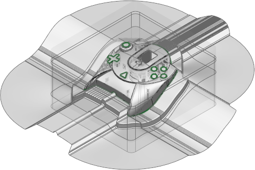 Это позволяет встроить рельеф в области пресс-формы таким образом, что в важных точках поверхностей разъёма можно было увеличить давление. Чтобы использовать эту функцию, необходимо, чтобы оба набора поверхностей разъёма были представленными двумя телами, иначе мастер предполагает, что вы предоставили только один набор поверхностей.