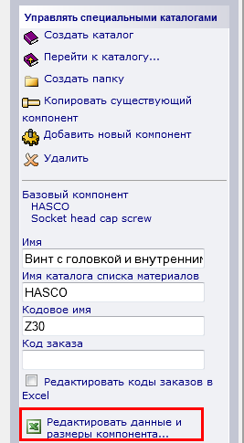 - Выберите опцию Редактировать данные и размеры компонента.
