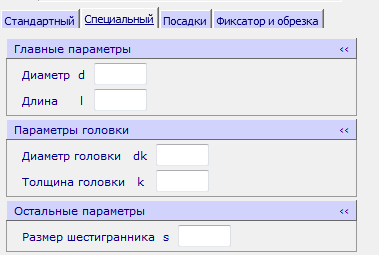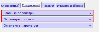 - Выберите вкладку Специальный. Отобразятся группы Главные параметры и Параметры головки.