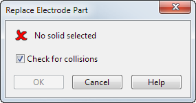 Если флажок Проверка на столкновения установлен, откроется диалоговое окно Столкновения с электродом. Нажмите кнопку ОК, чтобы закрыть диалог и заменить деталь.