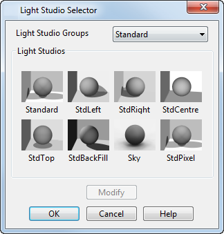 - Выберите направление освещения в области Источники света. Все опции Группы источников света связаны с опциями Источники света. По умолчанию выбрана группа источников света Standard, содержащая следующие схемы освещения: