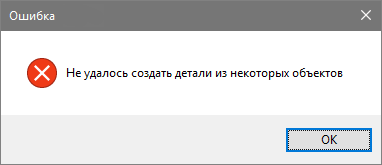 Нажмите кнопку OK, чтобы продолжить процедуру раскроя, игнорируя несовместимые объекты.
