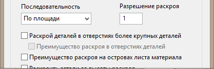Раскрой деталей в отверстиях более крупных деталей - если выбрана данная опция, детали могут раскраиваться в отверстиях больших деталей.
