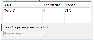 Расход - открывает площадь в процентах, занимаемую деталями, разложенными на всех копиях листа.