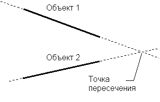Точка пересечения двух не пересекающихся линий показана ниже.