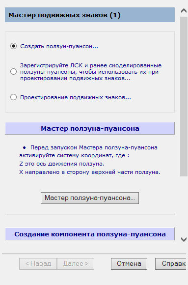 - Откройте вкладку Мастер > панель Создать пресс-формы > Ползун, чтобы открыть Мастер подвижных знаков: