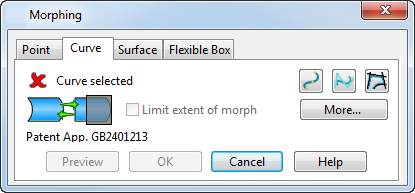 Прим.: Функции морфинга по точке, кривой или поверхности - это предмет патентной заявки. Предмет патентной заявки: GB2401213 Altering a CAD model.