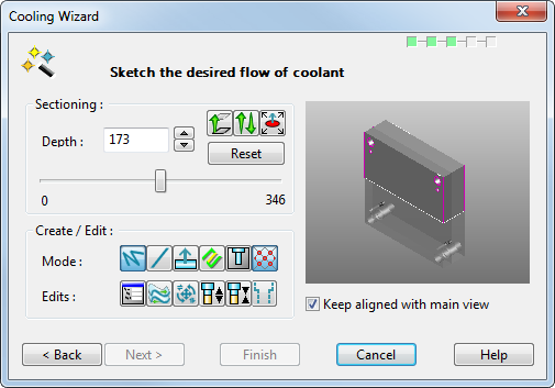 Данная страница Мастера каналов охлаждения используется для ввода и редактирования компоновки каналов охлаждения.