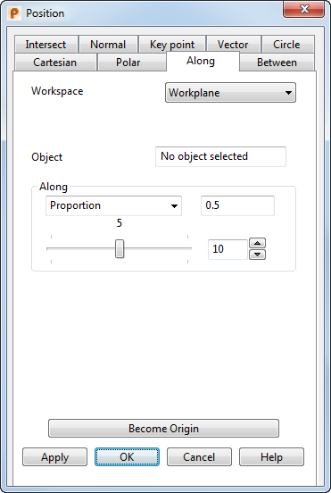 Применить - вводит положение. Если текущая операция допускает несколько точек, диалог остается открытым и готовым к вводу других точек. В противном случае диалог закрывается.