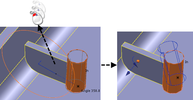 - Введите значение на панели инструментов, чтобы задать Угол, или щелкните мышью и потяните грань, как показано на рисунке: