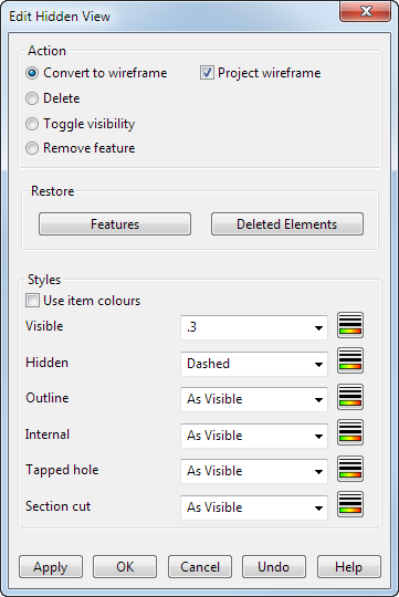 Используйте диалог для редактирования невидимых и видимых линий. В выбранном виде можно поворачивать модель, используя среднюю кнопку мыши при открытом диалоге.