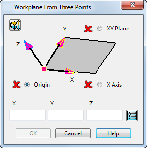 . Необходимо задать координаты для всех трех точек. Если были введены совпадающие точки или все три точки лежат на одной оси, открывается сообщение об ошибке