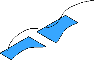 Если каркасный объект не лежит на поверхностях или телах, то он проецируется на поверхности и тела, и они ограничиваются этой проекцией. Можно проецировать кривую на поверхности и тела:
