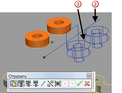Щёлкните мышью, чтобы задать начальную точку плоскости отражения. При перемещении мыши отображаются линия и объекты отражения.