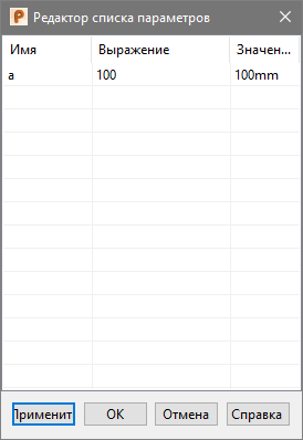 Этот диалог отображает текущие значения параметра, используемого в компоненте. Его можно изменить, щёлкнув по нему и введя новое значение. Откройте калькулятор, щёлкнув правой кнопкой мыши по значению.