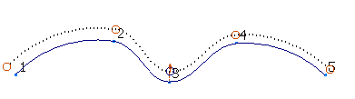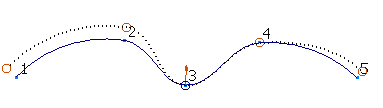 В следующем примере точка 1 на базовой кривой была смещена на значение, равное 10, а точка 4 смещена на значение, равное 50. Выбор опции Освободить незафиксированные точки