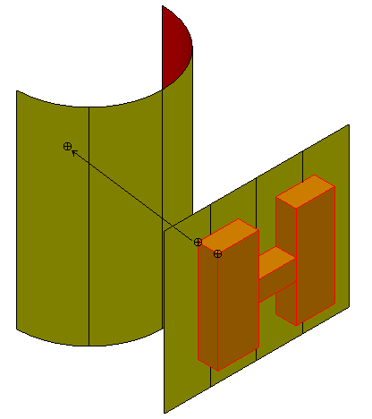 Если точки выбранных объектов лежат на справочной поверхности, они перемещаются к соответствующей точке на управляющей поверхности.