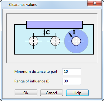 - Изменить значения - открывает диалог Изменить значения зазоров, который можно использовать, чтобы задать расстояния для проверки отверстий: