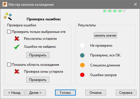 - Далее - открывает страницу Опции сохранения Мастера каналов охлаждения.