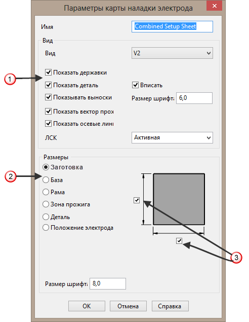 Выберите опцию Комбинированная карта наладки и нажмите кнопку, чтобы открыть диалог Параметры карты наладки электрода.