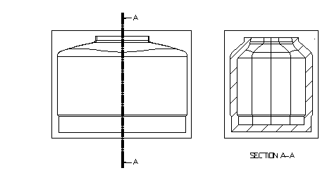 Наклонное ступенчатое сечение: Выровнять наклонные сечения с осью координат - эта функция создаёт сечение того же размера, что и исходный вид, так как оно просматривается в одном направлении. С использованием этой опции получено сечение Выравнивать наклонные ступенчатые сечения - эта функция используется для точного образмеривания. Данная опция разворачивает виды ступенчатого сечения, чтобы показать их в плоскости и иметь возможность измерить их. С использованием этой опции получено сечение Подробнее смотрите в разделе "Опции выравнивания наклонного сечения". |