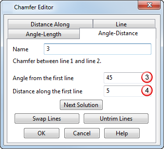 - Используйте вкладку Угол-Длина для конвертирования фаски в фаску типа Угол-Длина:
