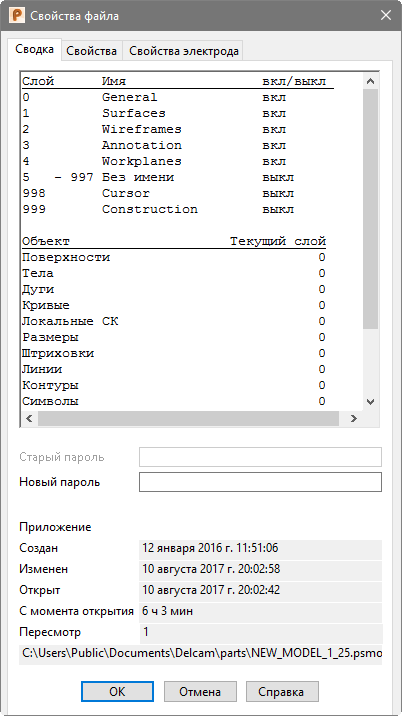 Вкладка Свойства диалога Свойства файла открывает информацию о модели.