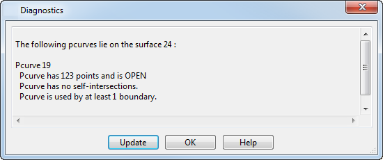 Плохо заданные п-кривые (которые могут привести к плохо обрезанным поверхностям) можно идентифицировать с помощью вкладки Управление > панель Исправить > Плохо обрезаны. Нужно тщательно проанализировать данные п-кривых путем генерирования диагностики, чтобы определить нахождение проблемных зон.