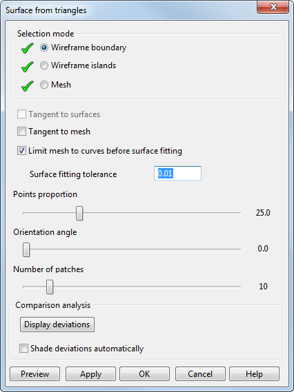 - Введите Допуск подгонки поверхности, чтобы показать допустимую разницу между сеткой и создаваемой поверхностью. Большой допуск создает поверхность, которая не вплотную соответствует исходной сетке.