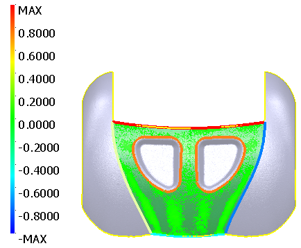 Выбрав сетку, нажмите кнопку Показать отклонения, чтобы открыть цветовую карту Сравнительного анализа и отклонения в просмотре поверхности: