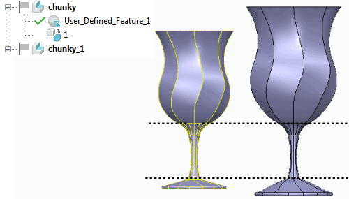 Следующий пример демонстрирует создание масштабированной версии бокала для вина при постоянной длине ножки бокала.
