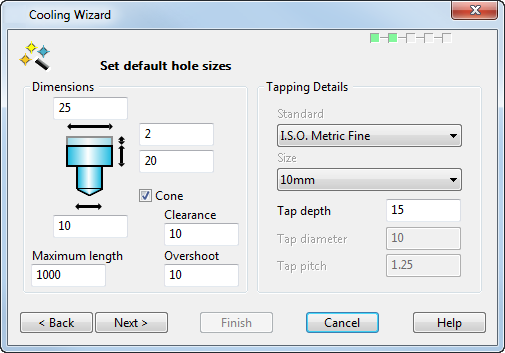 Эти значения используются для создания просмотра отверстий. Вы можете отредактировать отдельные отверстия позже в мастере перед тем, как создать их.