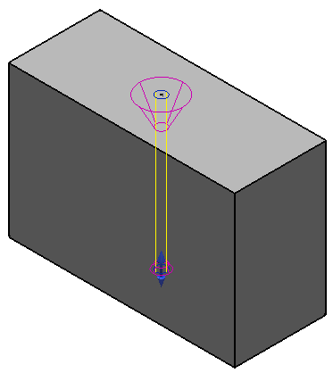 . На следующем примере показаны угол фаски, равный 20 для основания отверстия и 45 для сквозного отверстия: