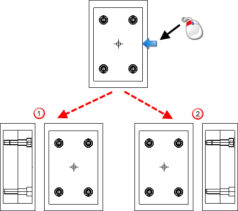 Если опция Третий угол включена, связанный вид появляется на стороне, ближайшей к месту, выбранному мышью. Если опция Третий угол выключена, вид появляется на противоположной стороне.