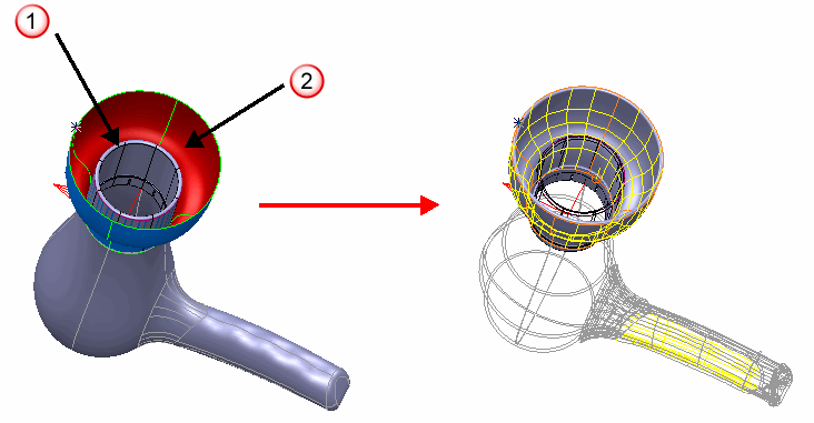 - Ограничивающие кривые или поверхности не должны разрезать выбранную поверхность От.