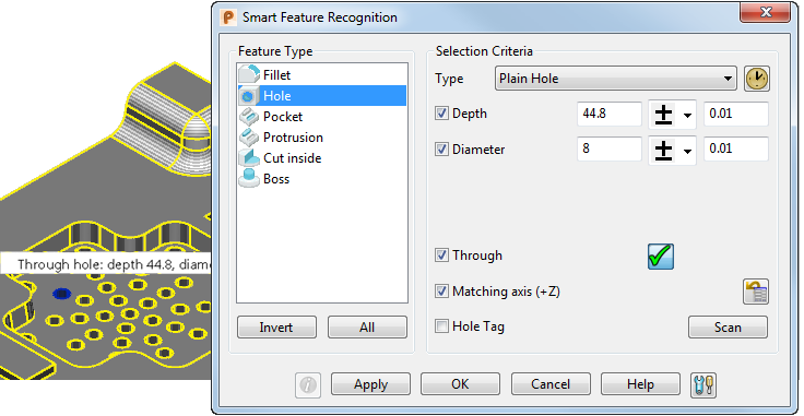 - Выберите вкладку Тело > панель Элемент > Быстрое распознавание элементов, чтобы открыть диалог Быстрое распознавание элементов.