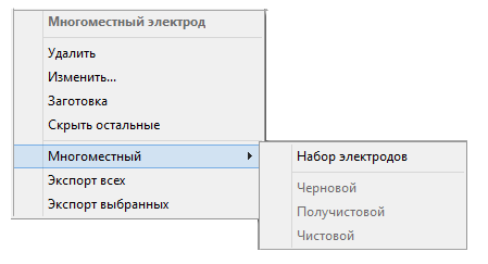 Если вы выбираете многоместный электрод, открывается контекстное меню Многоместный электрод, содержащее дополнительные опции: