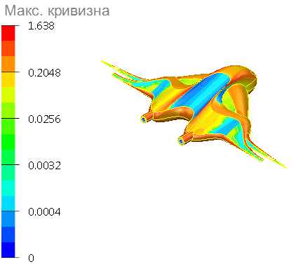 Тип шкалы - выберите Логарифмический или Линейный. С линейной шкалой кривизны можно увидеть изменение цвета закраски отчётливей, если кривизна поверхности резко изменилась. Чтобы получить более широкий диапазон кривизны на поверхности модели, используйте логарифмическую шкалу кривизны.