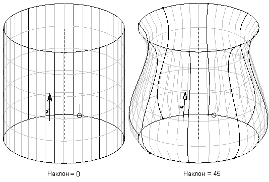 Наклон - угол наклона определяет направление касательной продольной кривой относительно касательной ведущей кривой: