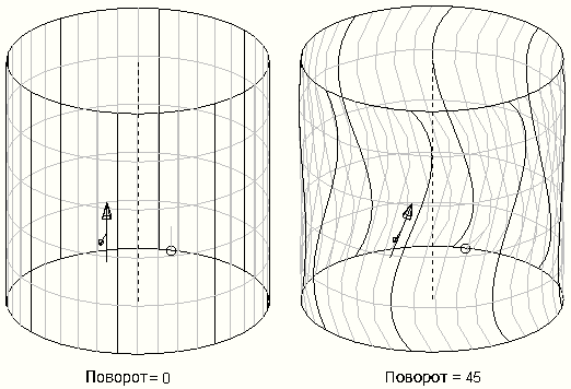 Поворот - заставляет продольную кривую повернуться вокруг ведущей кривой: