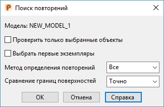 - Метод определения повторений - поиск повторяющихся поверхностей управляется следующими опциями: