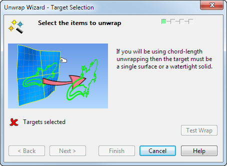 - Цели выбраны - выберите объект для создания развертки..