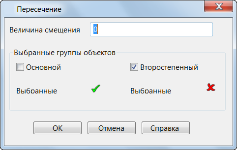 Если в поле Величина смещения введено значение 0 и нажата кнопка OK, в пересечении объектов создаются контуры