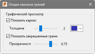 - Используйте опцию Показать каркас, чтобы задать показывать или нет каркас наклонных граней.