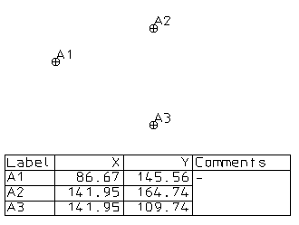 Таблица точек содержит координаты данных точек.